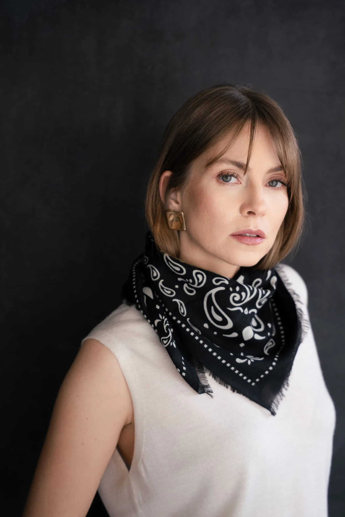 Wykonana z cienkiego, tkanego kaszmiru pozostaje niemal niewyczuwalna na skórze. Miękko układa się wokół szyi, dodając stylizacji lekkości i swobody, bez uczucia ciężaru. Ta lekkość naprawdę Cię zaskoczy.