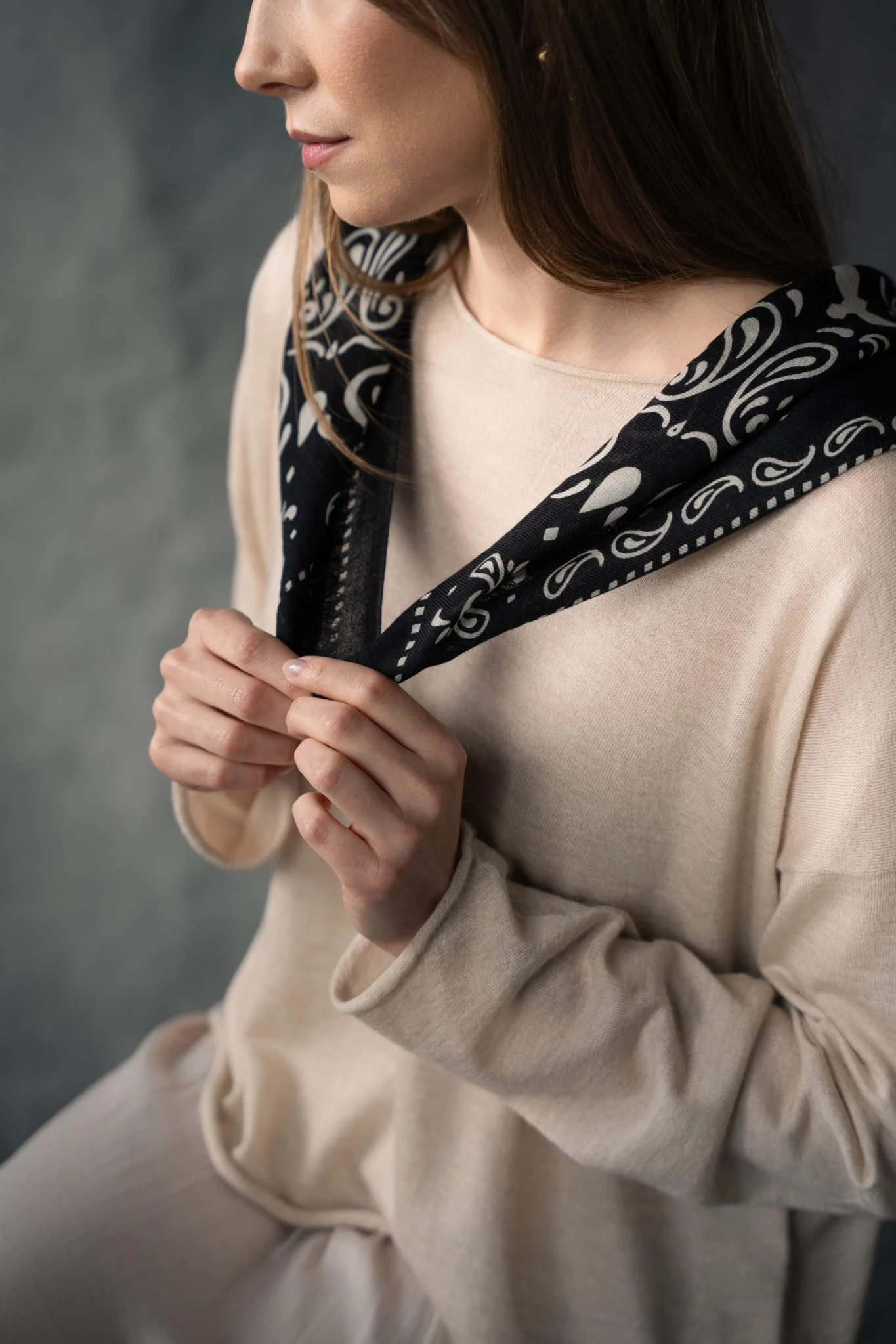 Bandana TARA to nie masowy produkt, lecz przemyślany detal, który buduje Twój styl i wprowadza luksusowy, artystyczny akcent do codziennej garderoby.