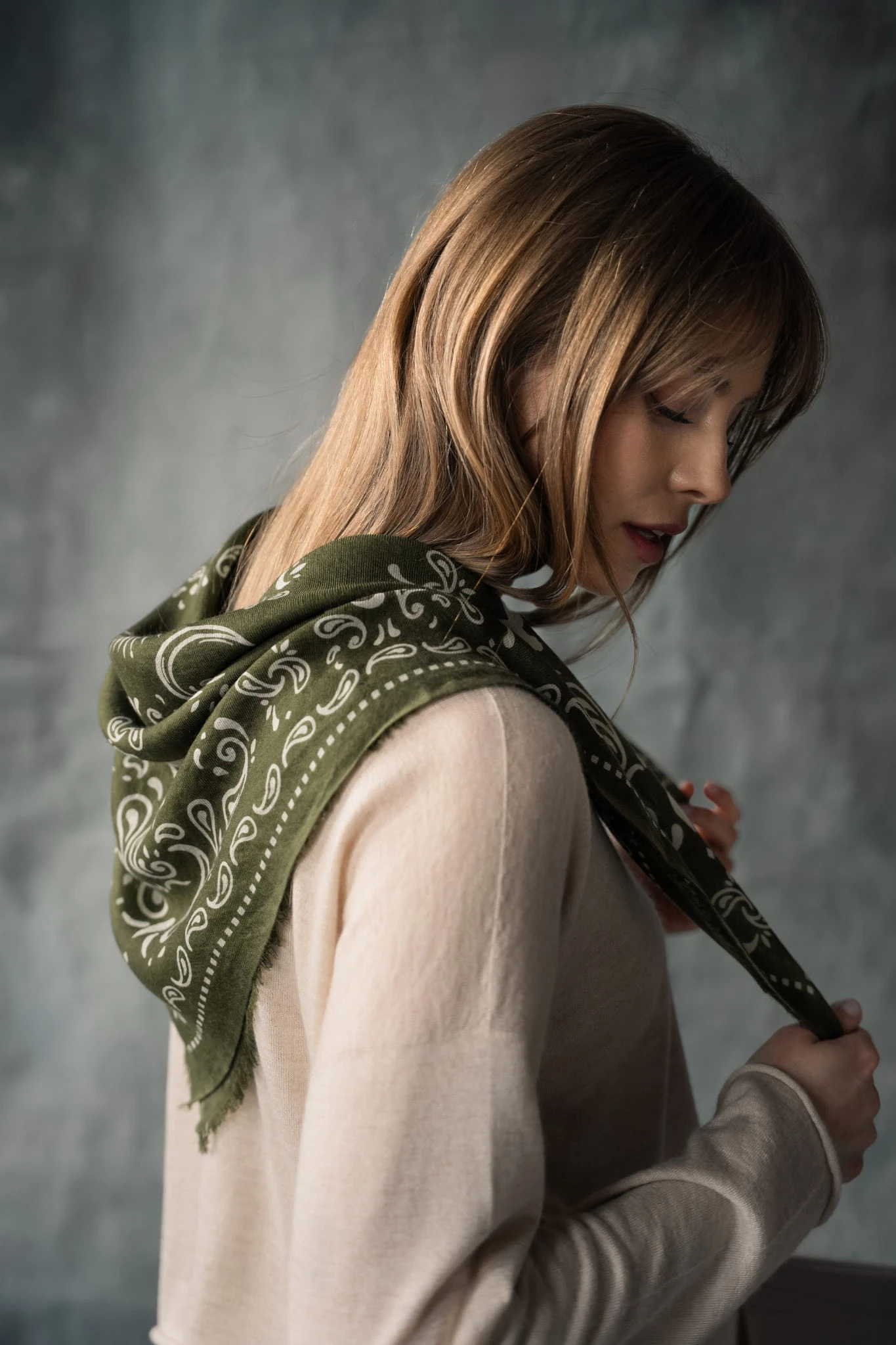 Wykonana z cienkiego, tkanego kaszmiru pozostaje niemal niewyczuwalna na skórze. Miękko układa się wokół szyi, dodając stylizacji lekkości i swobody, bez uczucia ciężaru. Ta lekkość naprawdę Cię zaskoczy.