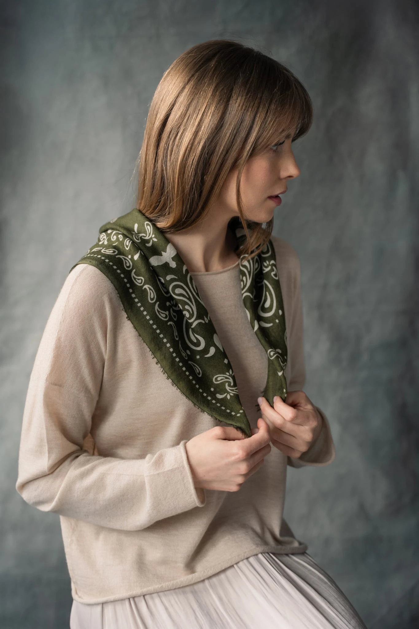 Chusta TARA Air khaki, 100% kaszmir
