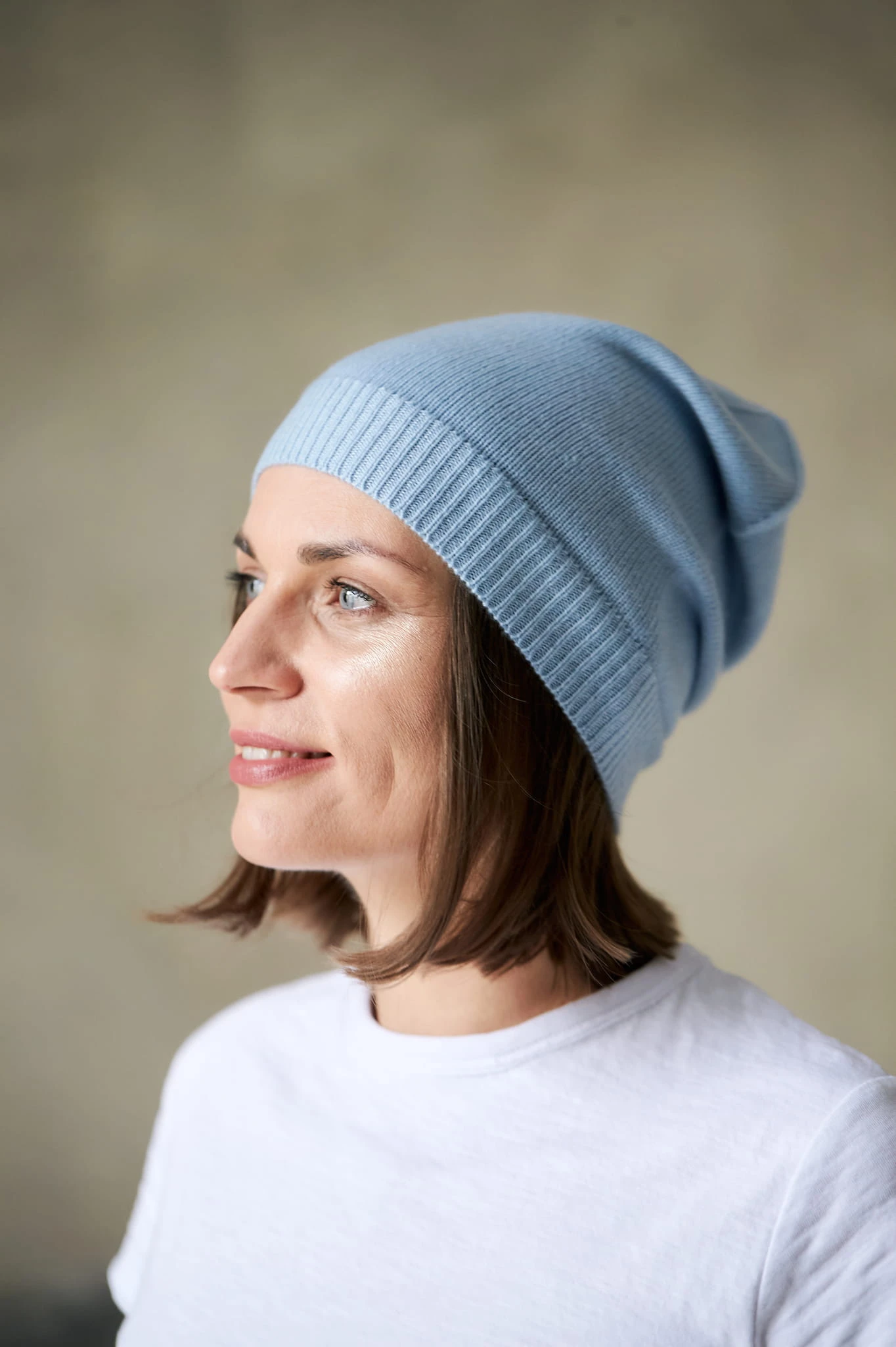 Minimalistyczna czapka typu beanie wykonana w 100% z kaszmiru klasy premium. Dziana w konstrukcji bezszwowej, dzięki czemu idealnie układa się na głowie i nie powoduje żadnego ucisku i dyskomfortu.