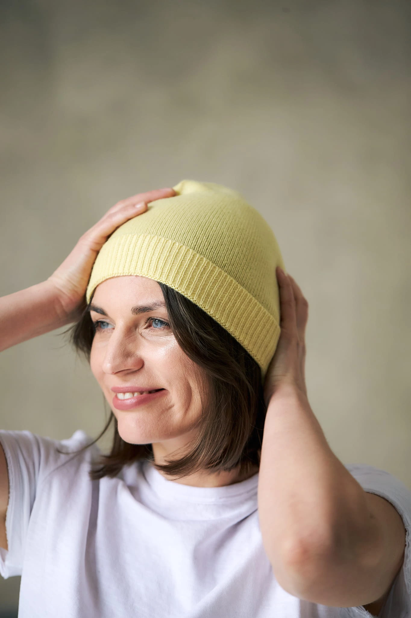 Czapka ELIA lemon 100% kaszmir