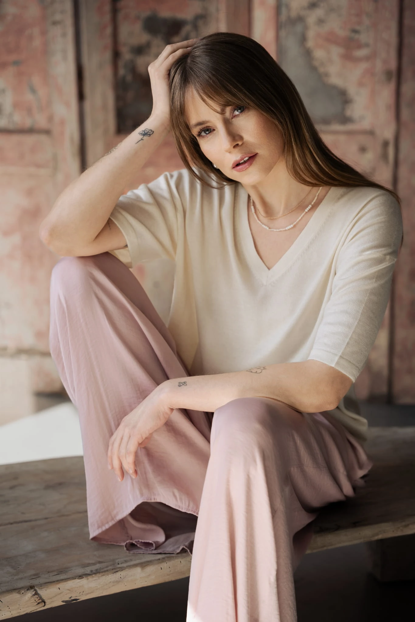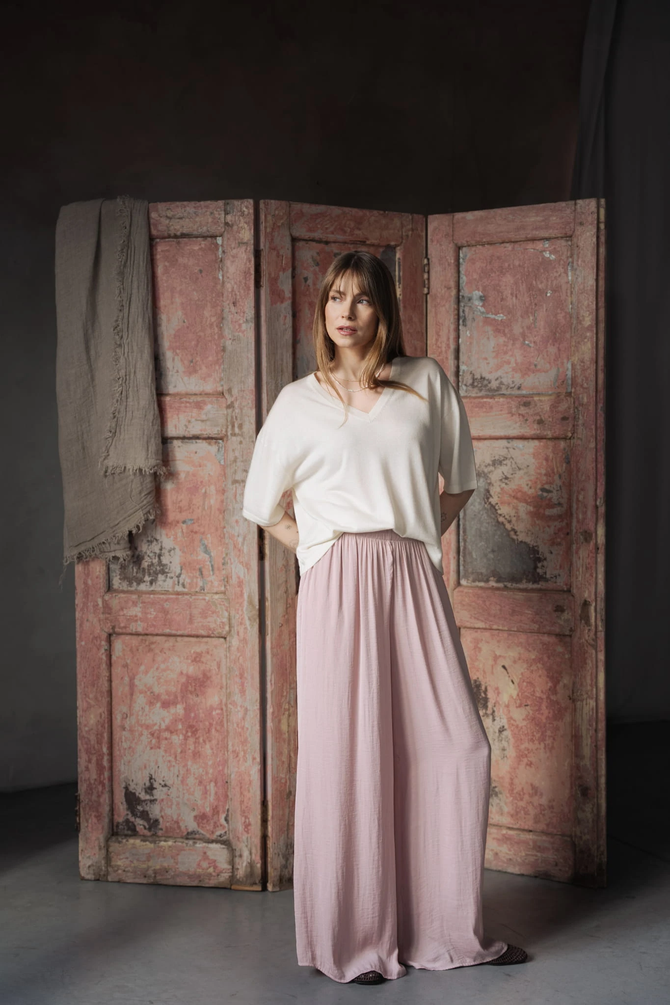 Dzięki połączeniu jedwabiu i kaszmiru jest lekki, przewiewny i subtelnie chłodny w dotyku. Miękko układa się w ruchu i naturalnie dopasowuje do sylwetki. To dzianina, która daje komfort bez nadmiaru ciepła - lżejsza i jeszcze bardziej oddychająca niż klasyczny kaszmir.