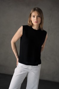 Luźniejszy top na szerokich ramiączkach z prostym dekoltem, zaprojektowany jako pierwsza warstwa.
