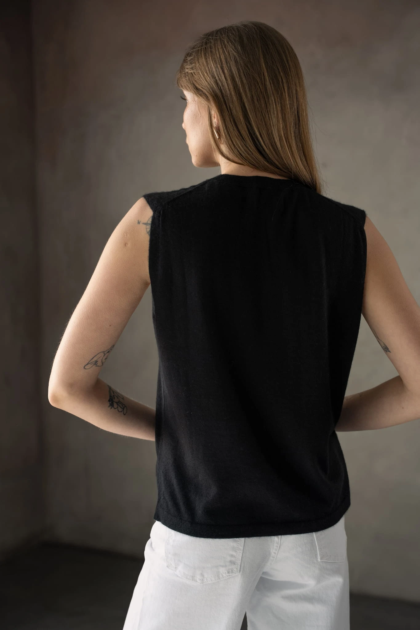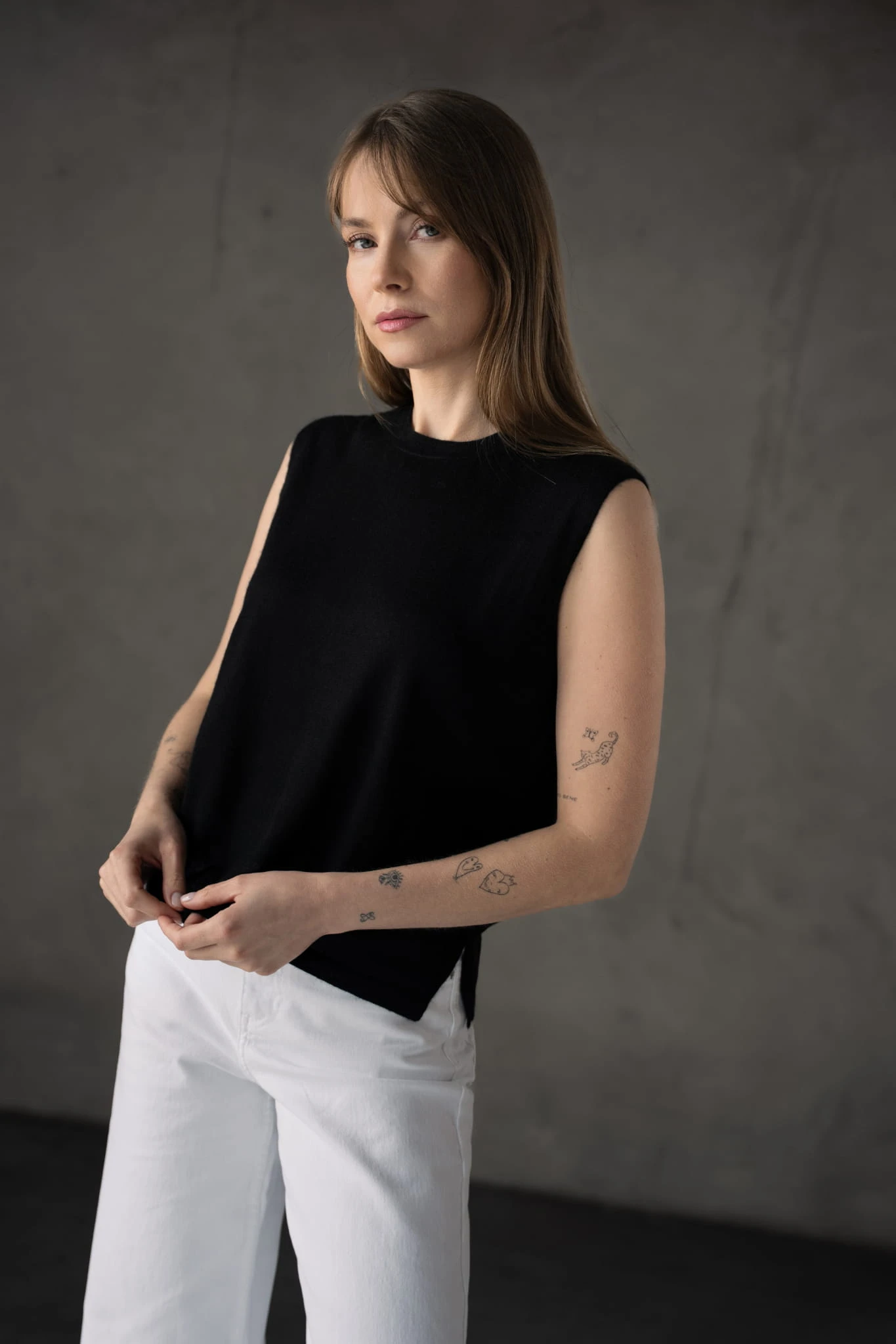 Ten model powstał z cienkiej przędzy kaszmirowo-jedwabnej o gładkiej, uporządkowanej strukturze.