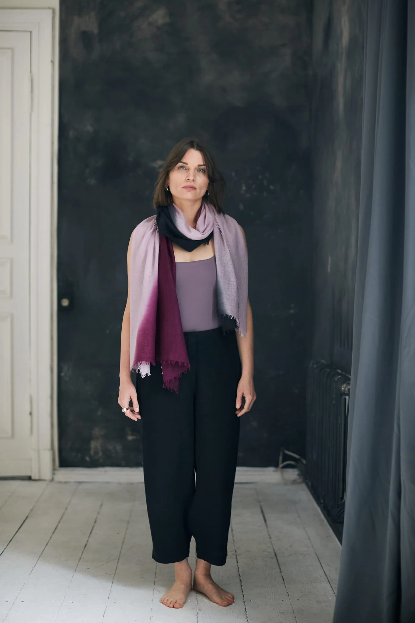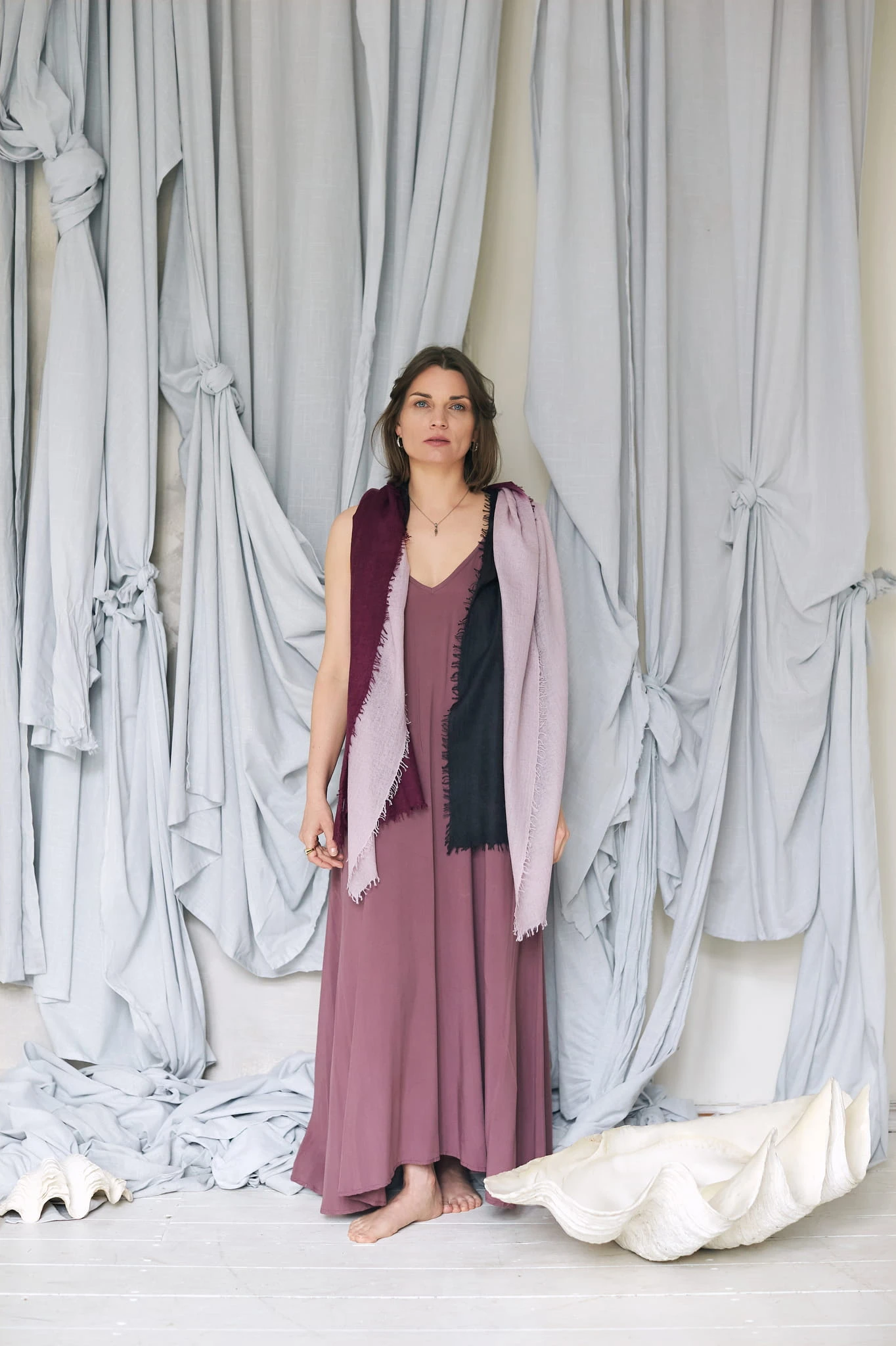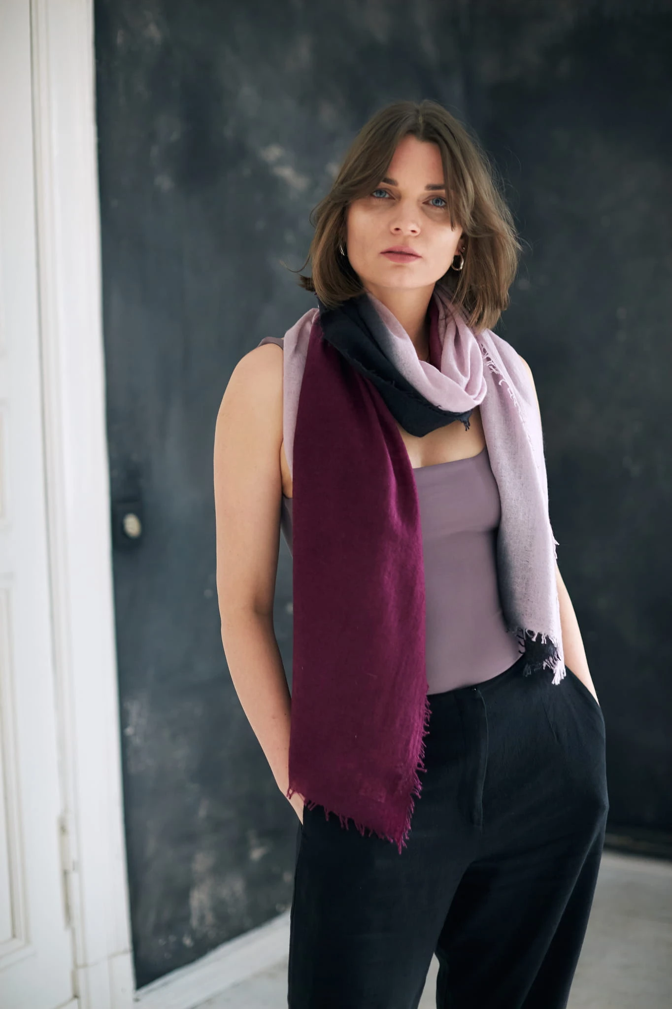 To szal, który łączy w sobie fakturę i kolor w niemal malarski sposób. Trójkolorowy wzór w stylu ombre - dostępny w czterech wariantach inspirowanych naturą - płynnie przechodzi od jednego odcienia do drugiego, tworząc harmonijną, spokojną kompozycję. Jest lekki jak piórko, a jednocześnie ciepły i otulający. Dzięki półprzezroczystej strukturze i ręcznie wykończonym brzegom, DAWA prezentuje się elegancko, ale z luzem, podkreślając naturalny urok kaszmiru.