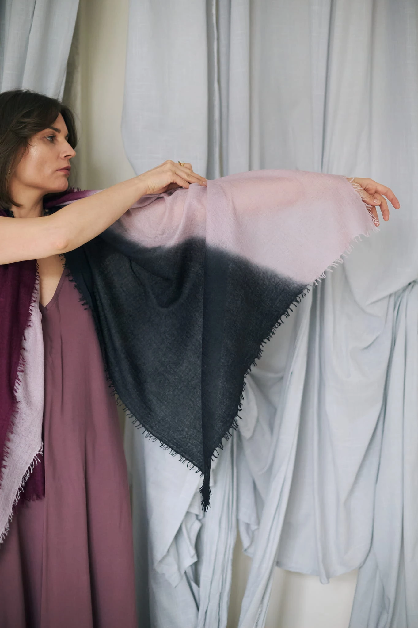 Szal DAWA to połączenie subtelnego rzemiosła, naturalnego ciepła kaszmiru i delikatnej gry kolorów. Wykonany w 100% z najwyższej jakości kaszmiru, tkany ręcznie, a następnie lekko masowany, co nadaje mu półfilcowaną strukturę. Ten proces wzmacnia włókna, sprawia, że materiał staje się bardziej miękki, elastyczny i półprzezroczysty - niczym mgiełka otulająca ramiona.