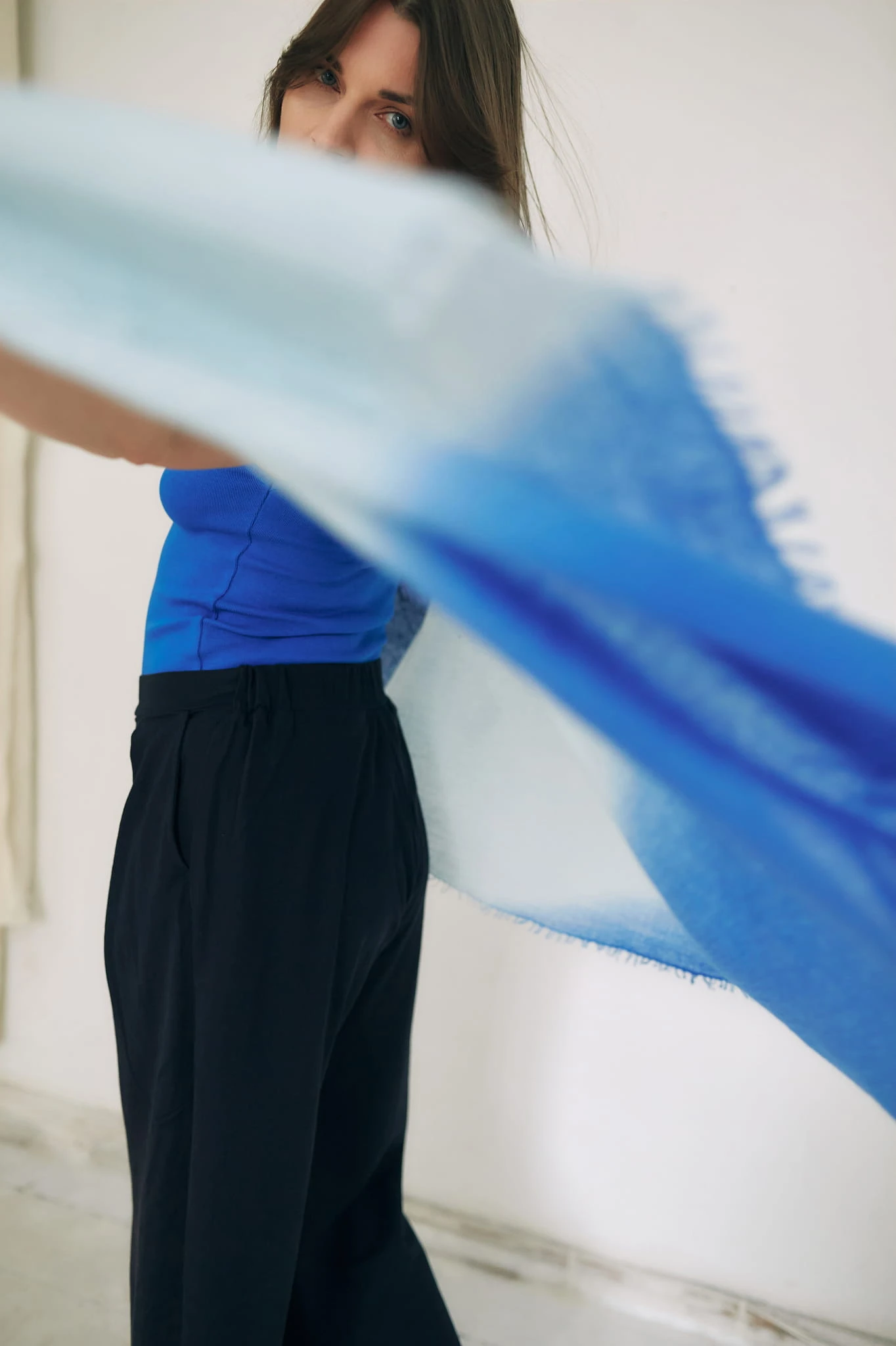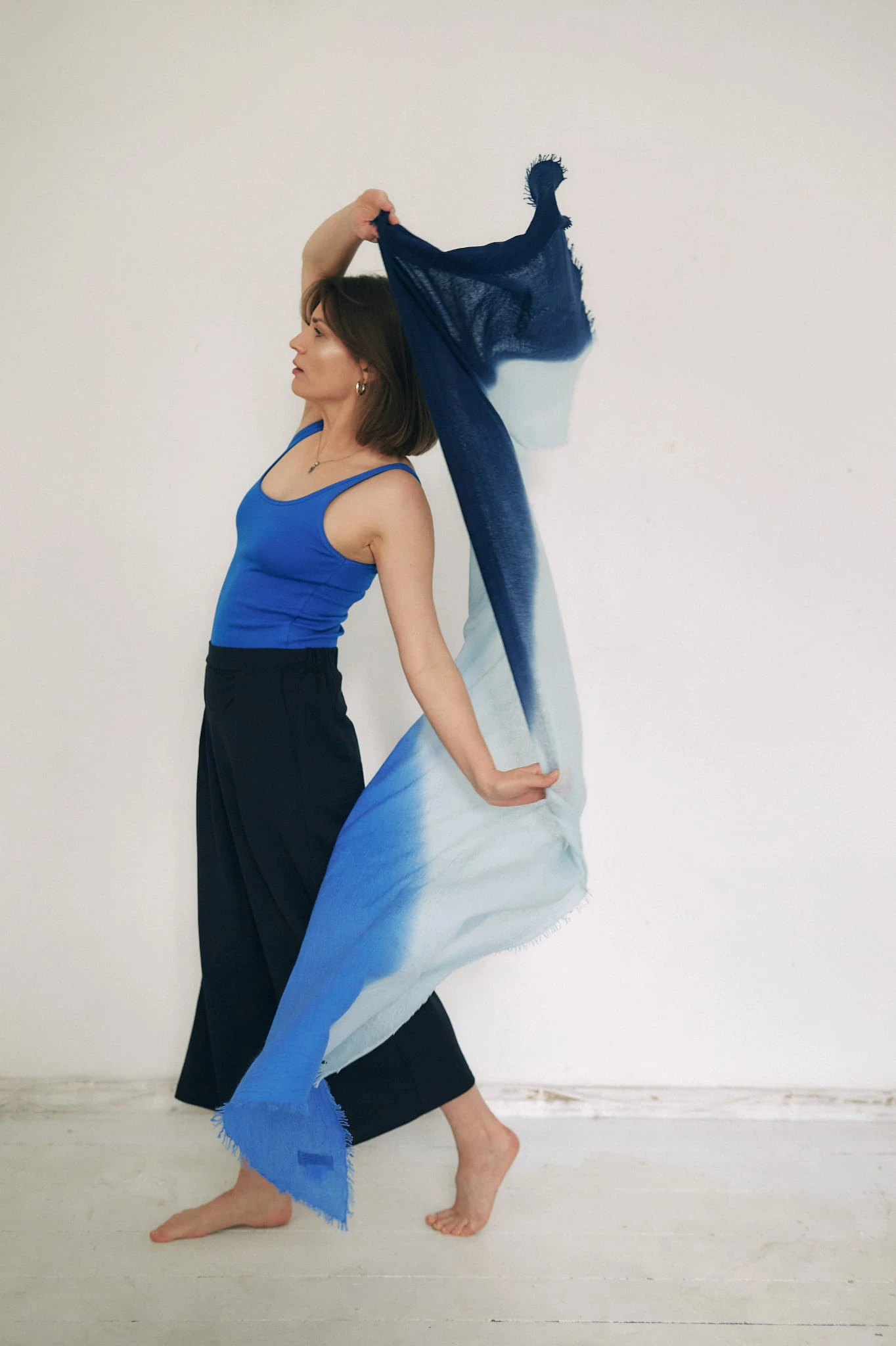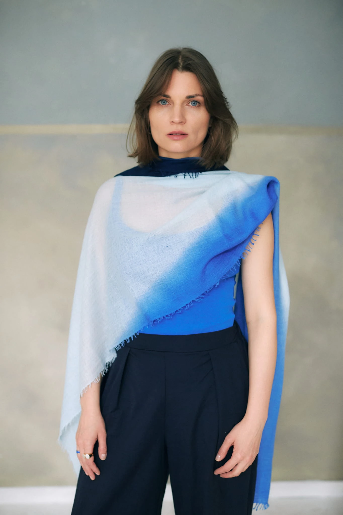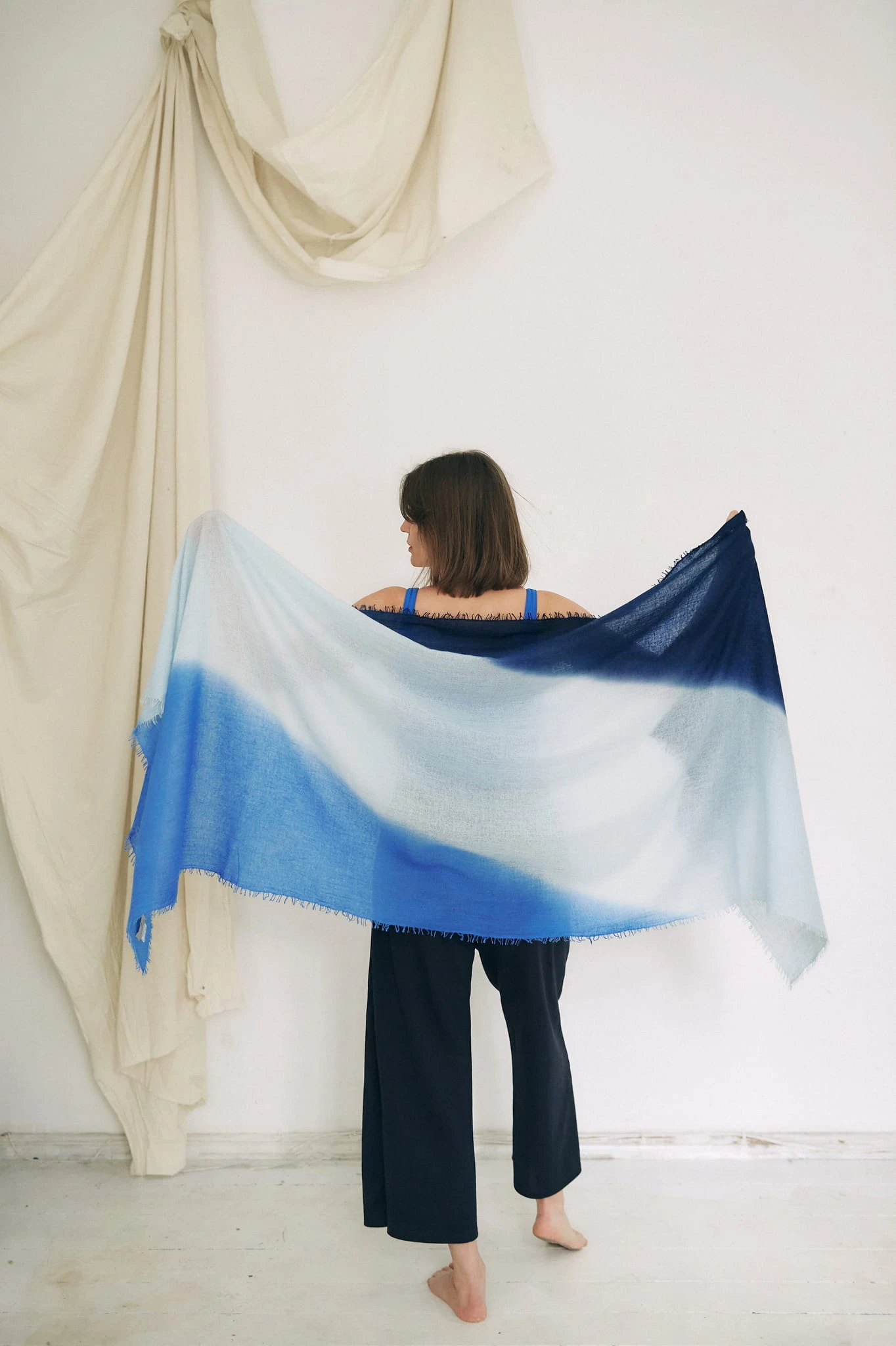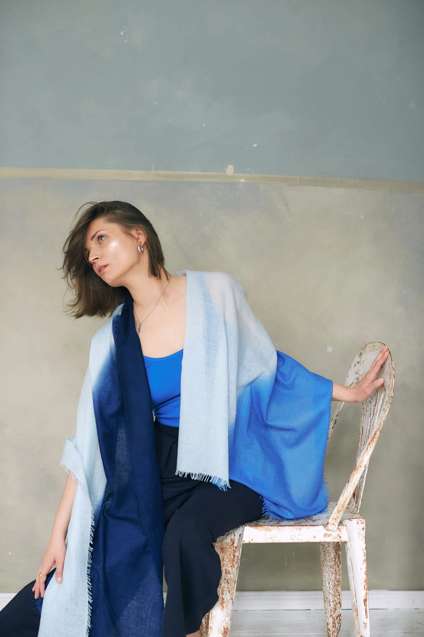 To szal, który łączy w sobie fakturę i kolor w niemal malarski sposób. Trójkolorowy wzór w stylu ombre – dostępny w czterech wariantach inspirowanych naturą - płynnie przechodzi od jednego odcienia do drugiego, tworząc harmonijną, spokojną kompozycję. Jest lekki jak piórko, a jednocześnie ciepły i otulający. Dzięki półprzezroczystej strukturze i ręcznie wykończonym brzegom, DAWA prezentuje się elegancko, ale z luzem, podkreślając naturalny urok kaszmiru.